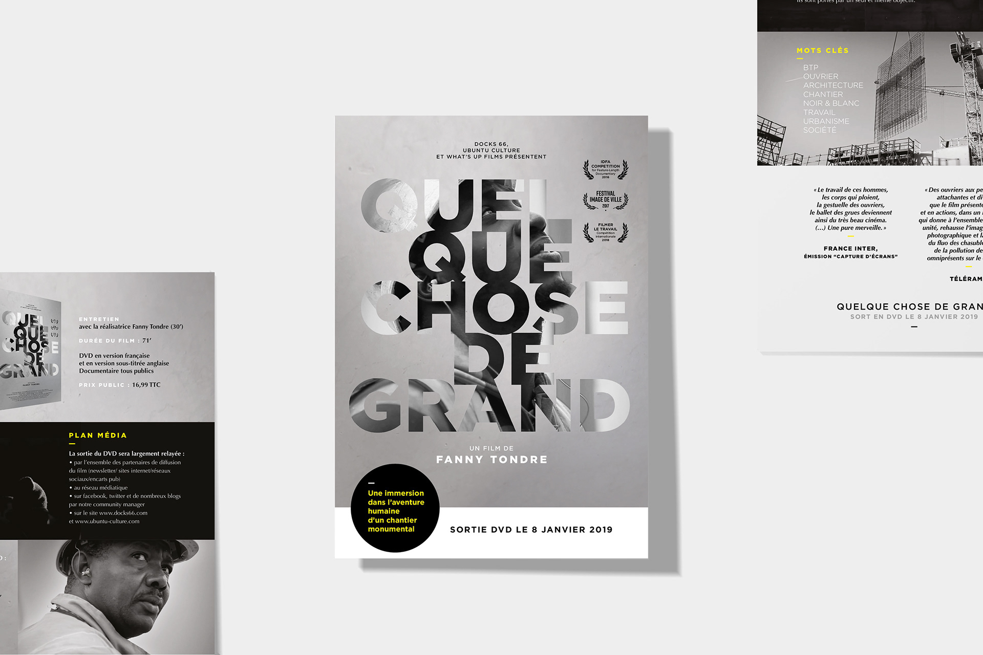 Création de l'identité du film Quelque chose de grand de Fanny Tondre (affiche et supports de communication).