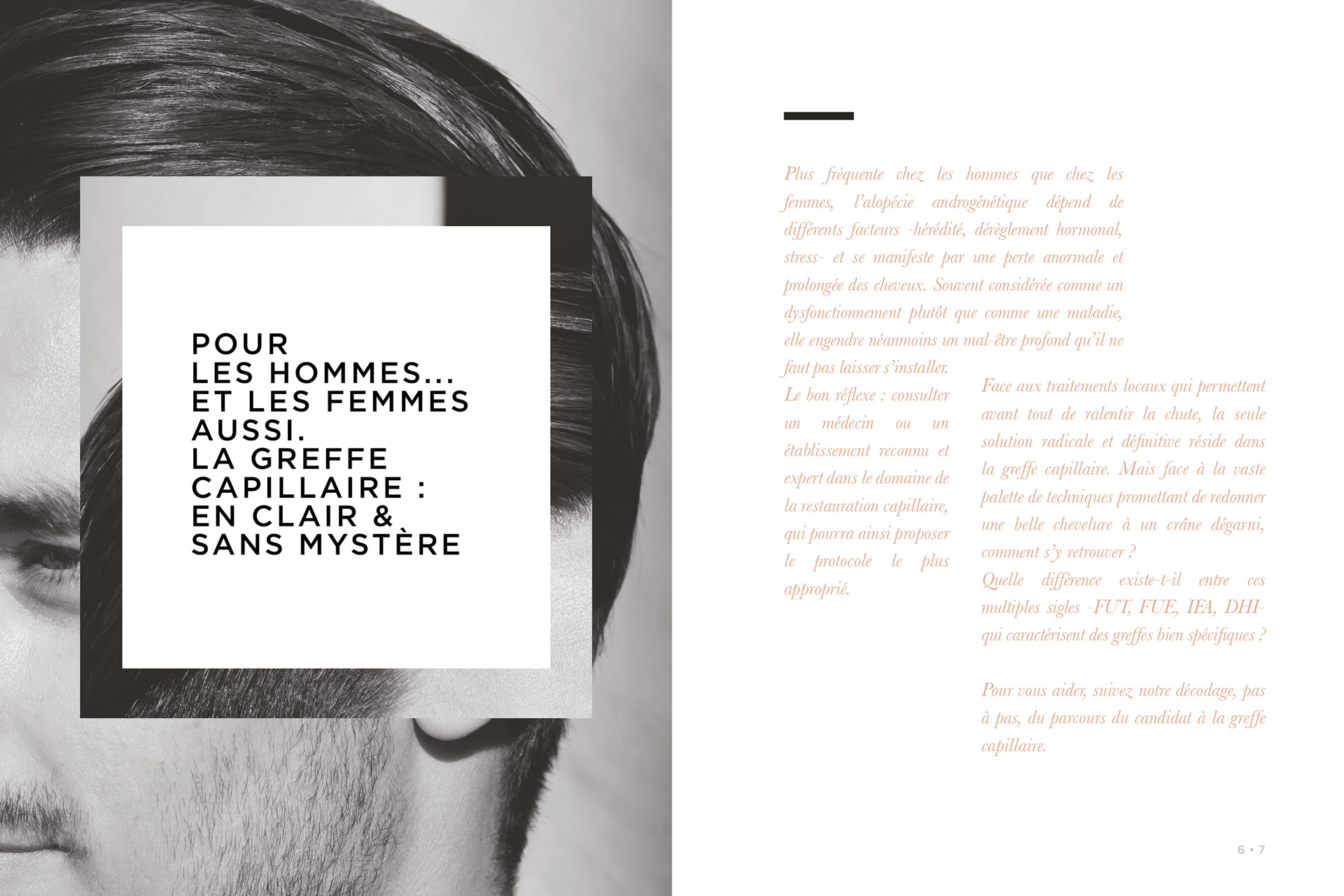 Création d'une maquette du livre La greffe capilaire, en clair et sans mystère pour les Éditions Lutétia